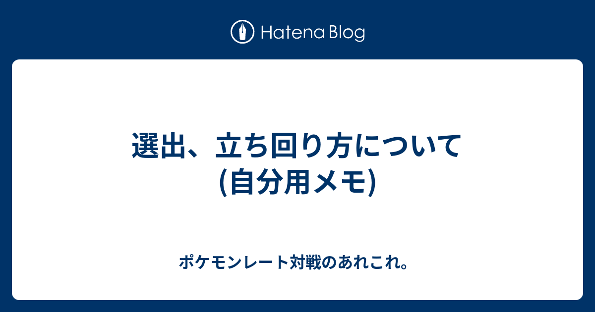 選出 立ち回り方について 自分用メモ ポケモンレート対戦のあれこれ